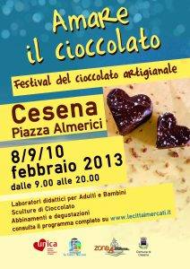 Amare il Cioccolato, il primo Festival del cioccolato artigianale a Cesena, si terrà il weekend dell’8/9/10 febbraio 2013 in Piazza Almerici. Il Consorzio Le Città I Mercati, nell’ambito delle iniziative di promozione degli eventi mercatali, organizza insieme ad Unica (l’Unione Italiana Cioccolatieri Artigiani) questa gustosissima iniziativa che ha come filo conduttore dell’intera iniziativa il cioccolato in tutte le sue forme.
